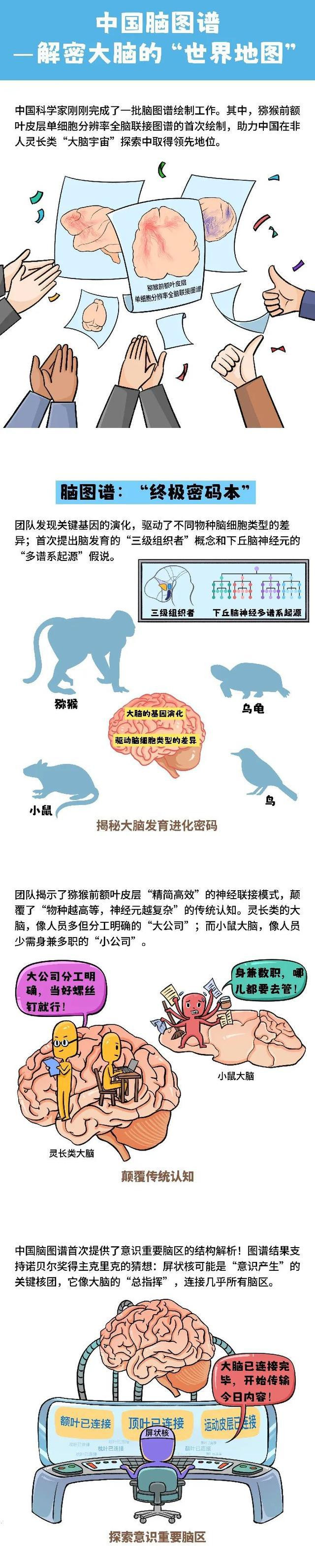 为破解感知、运动、学习记忆和决策等重要脑功能的运作密码,科学家一直致力于脑图谱研究,努力绘制高精度的“大脑地图”——精确定位神经细胞、解析神经网络联接规律,为理解脑功能机制、攻克脑疾病及研发类脑智能提供重要支撑。 近日,中国科学院脑科学与智能技术卓越创新中心、华中科技大学苏州脑空间信息研究院、华大生命科学研究院、中国科学技术大学、浙江大学医学院附属第一医院、郑州大学基础医学院、中国科学院遗传与发育生物学研究所、上海脑科学与类脑研究中心等国内科研机构,联合国内以及法国、瑞典、英国等多国科学家,借助脑成像、空间转录组和人工智能等前沿技术,深入解析了大脑细胞类型多样性、联接规律、发育进化规律及脑疾病分子机制,实现了在单细胞分辨率下从啮齿类到灵长类的介观图谱绘制的跨越,十项重要成果在Cell、Neuron等国际学术期刊集中发表,系列成果进一步巩固了我国在介观脑图谱领域的国际影响力,彰显了领域研究的优势和特色。